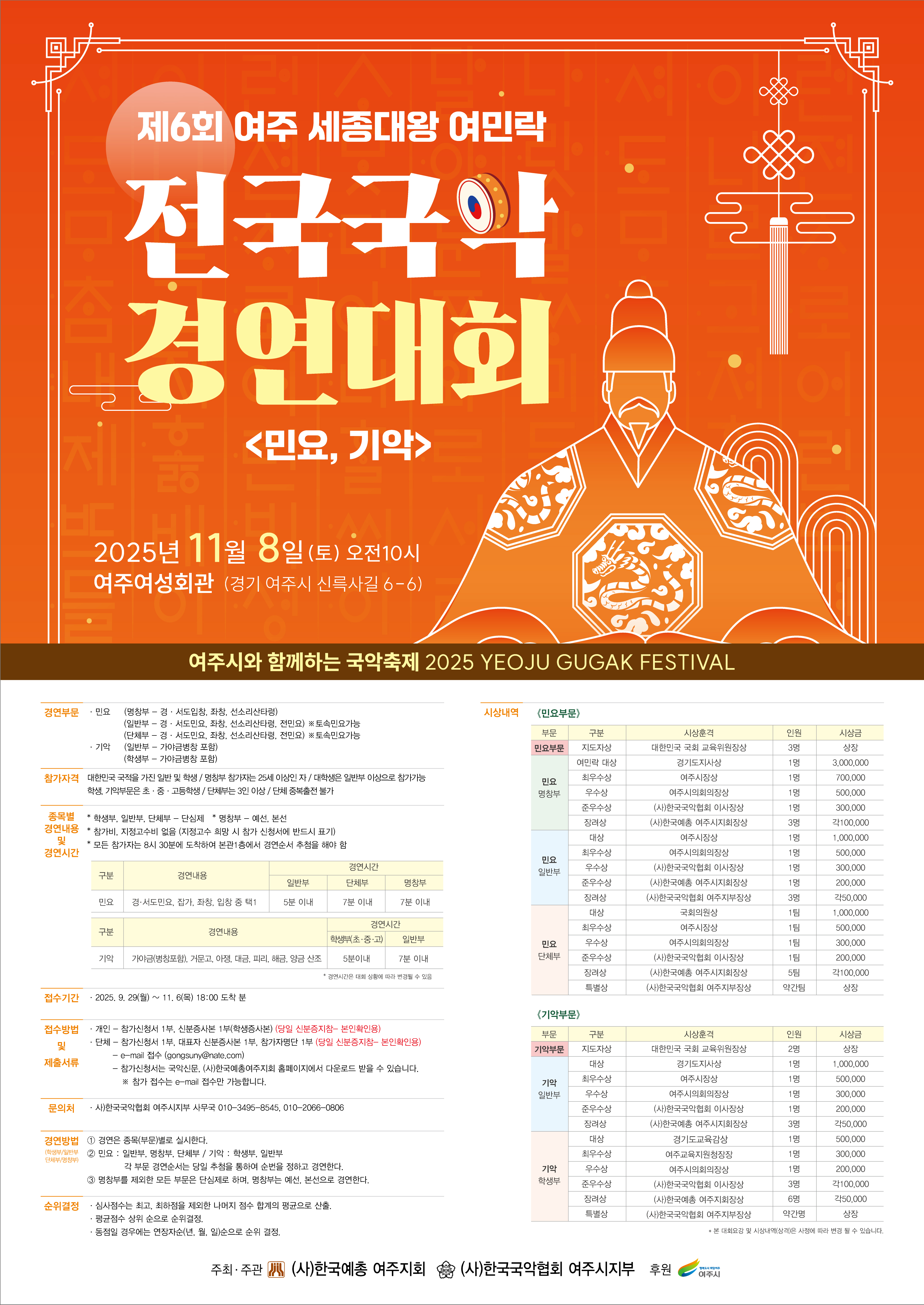 Á¦3ȸ ¿©ÁÖ ¼¼Á¾´ë¿Õ ¿©¹Î¶ô Àü±¹±¹¾Ç°æ¿¬´ëȸ ÀÔ»óÀÚ ¸í´Ü